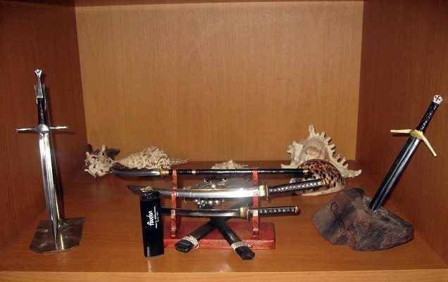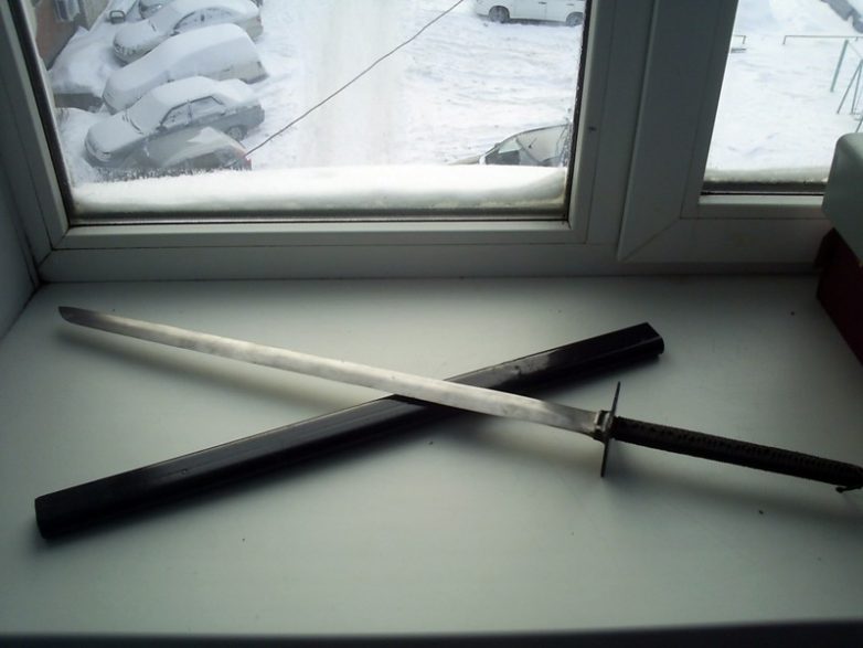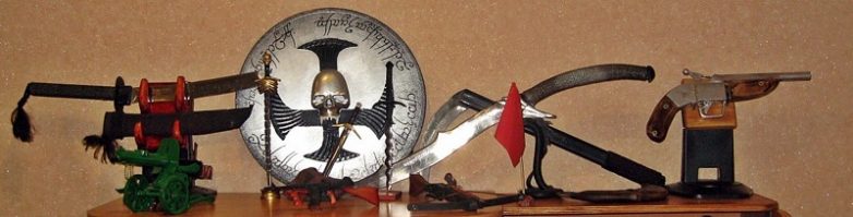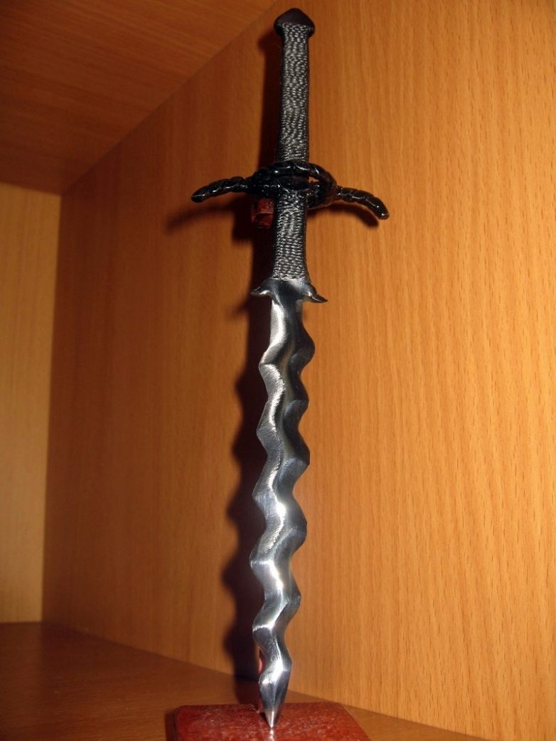 Полноразмерное. Рессора, обойма подшипника. Пистоль справа-действующий пугач на капсюлях. Сначала сделал на строительных патронах, но уж больно уши в хлам рвёт...)))Холодняк (крупный) откован и закален в кузне.