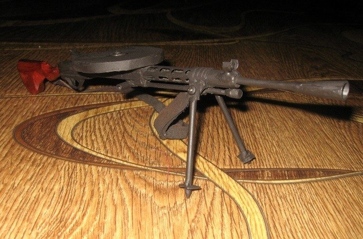 Полноразмерная MGшка. Работает всё до щелчка ударника. Делал неделю (если считать по пару часов в день). Не рабочие прицелы (в смысле-не двигаются). И кекс не открывается (к чему-патронов всё равно нет)))).