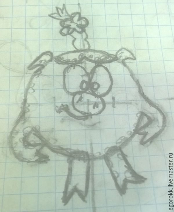 Долгие поиски закончились окончательным эскизом и недопониманием — как крепить «мордаху» Нюшки, как обеспечить розовый «поросячий» цвет?