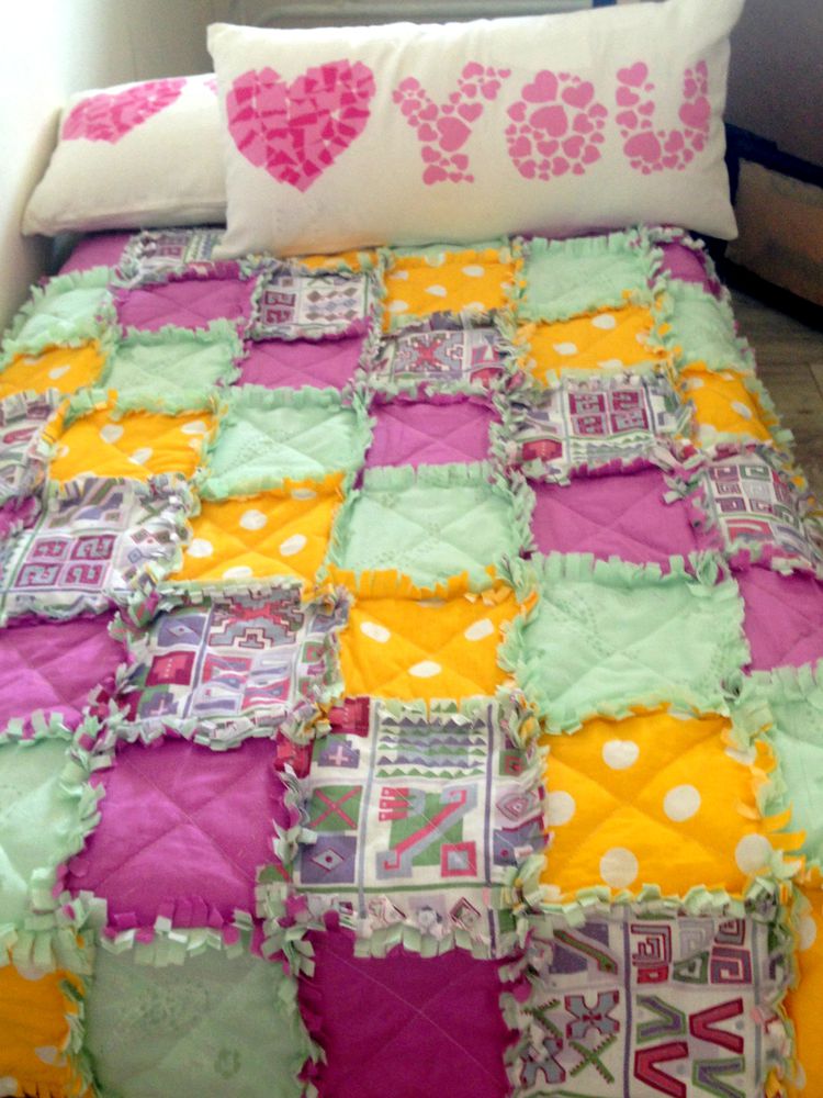 Цвета тканей подбираются любые: можно выбрать более нейтральные, пастельные и нежные, можно розовый заменить на голубой, и получится детское покрывало для мальчика.