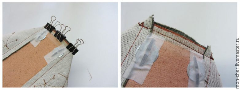 Еще остался небольшой момент: сверху подрезаем уголочки, подклеиваем их и отколачиваем. Подкладка готова!