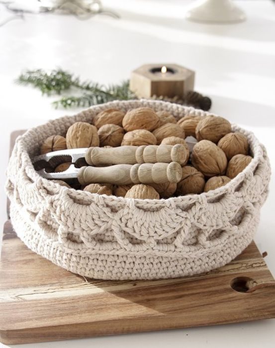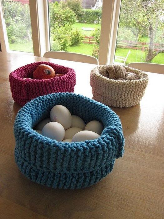 Безусловно, корзина является практичным предметом, в котором удобно хранить различные вещи и мелочи. Но такие вязаные аксессуары способны не только навести порядок в доме, но и сделать интерьер более интересным и разнообразным, выступить в качестве цветовых пятен и наполнить пространство уютом.