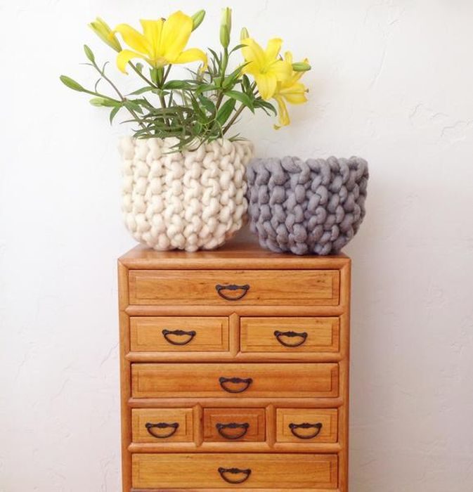 Как наполнить интерьер уютом в холодное время года? Без вязанных вещиц тут явно не обойтись, ведь именно они очень удачно вносят в интерьер тепло. И это может быть что угодно – корзинки, пледы, подушки и даже вязанные кашпо для цветов.