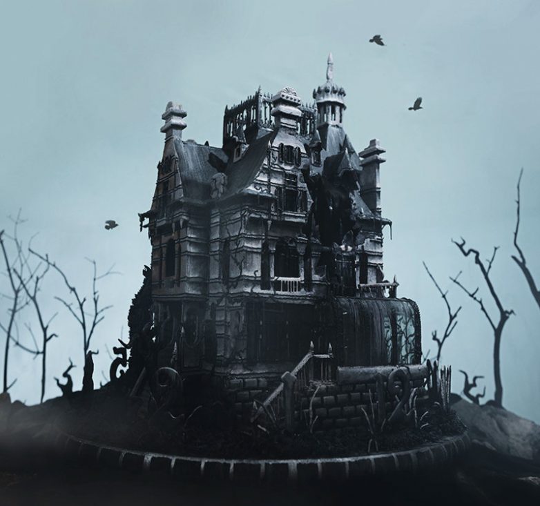Домик предназначен для нового фильма Тима Бертона «Дом мисс Педигрин для особых детей» (»Miss Peregrine’s home for Peculiar Children"). Имбирный дом двусторонний, в нем есть работающие часы, правда, они ведут обратный отсчет. И, главное, дом полностью съедобный!