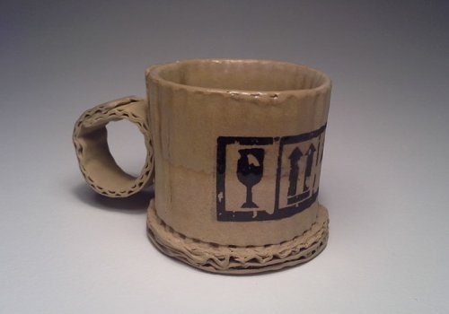 И это действительно было бы глупо, если бы это был картон. Потому что на самом деле это — глиняные чашки, искусно замаскированные под картонные, которые виртуозно делает Тим Ковальчик (Tim Kowalczyk).