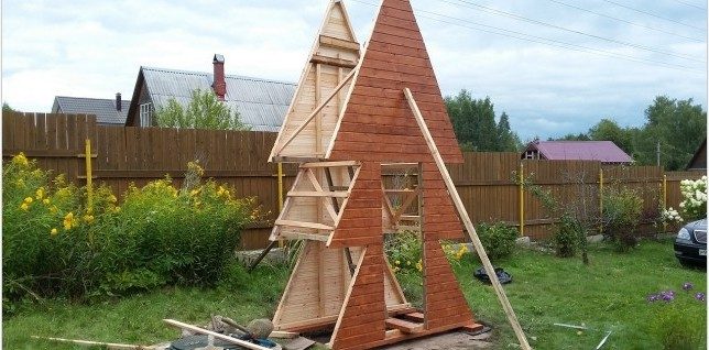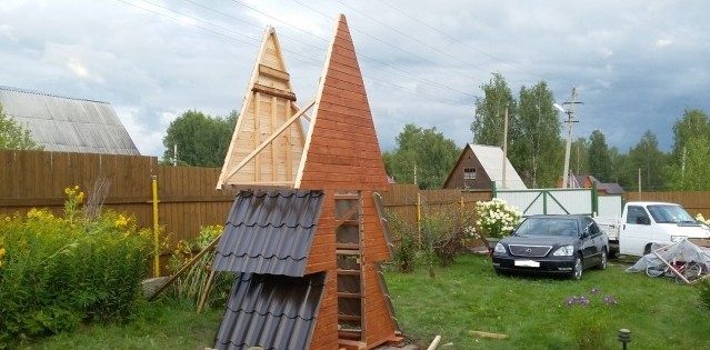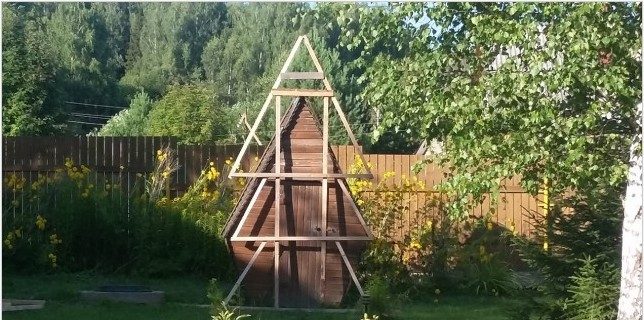 как много Вы затратили напрасно сил. Маленькая, тщательно и аккатно сделанная будочка, хорошо закрывающаяся подогнанная дверь. Материала было достаточно. Вот такая версия в незаметном углу- самое то. Зачем Вы это вознесли. Непонятно. Конечно, хорошо, что дети помогали. И покрасить можно красиво, если дерево обработано хотя бы грубой шкуркой. С деревом надо работать тщательно.