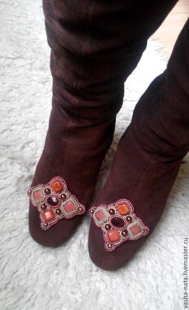 Так как я много вышиваю бисером, то решила вышить декоративные элементы для своих сапог.