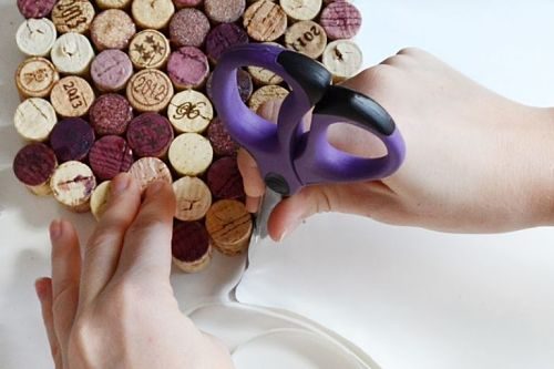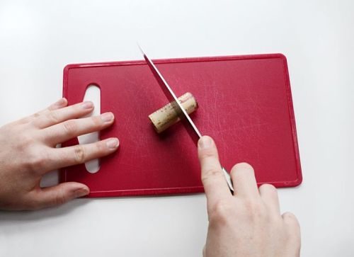 Подставка из пробок шаг за шагомНачинаем резать все собранные пробки пополам. Во время резки аккуратно проворачивайте пробку, чтобы получить ровный край.