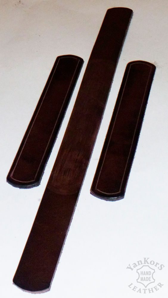 Обводим это все белой гелевой ручкой или шилом и вырезаем. Проходимся по ним канавкорезом или разметчиком шва на расстоянии примерно 3 мм. от края и снимаем фаску.