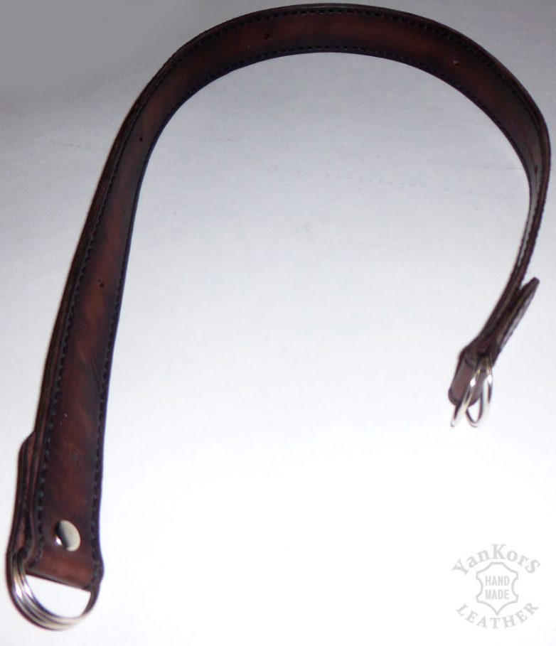 Теперь пришиваем крепление для ремня. Здесь это ремешок, идущий вдоль боковушки, оканчивающийся полукольцами.