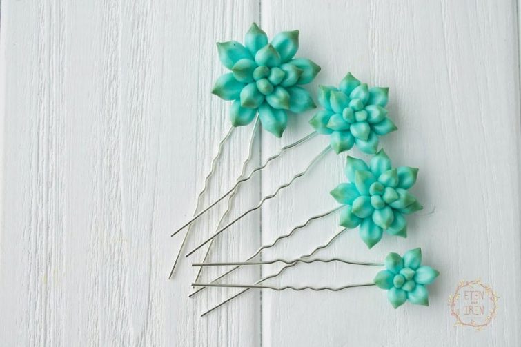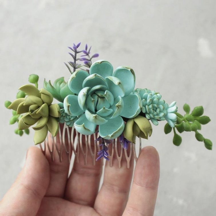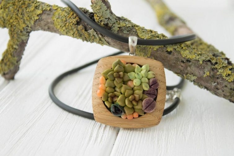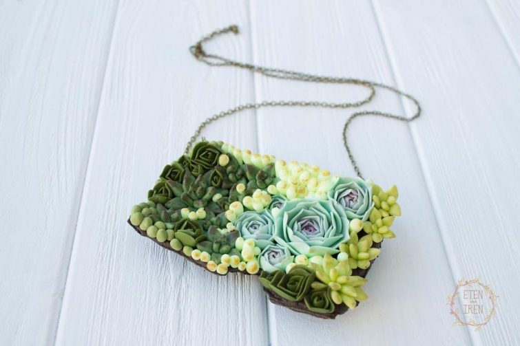 Она тут же бросилась на поиски этих загадочных растений в своём городе, но к сожалению не нашла ни одного экземпляра. Нет, она, конечно же, нашла их в интернете, но ждать 2 недели доставки было слишком долго для Ирины. Руководствуясь правилом «не можешь купить — сделай» художница начала ваять небольшие суккуленты из полимерной глины. После того, как Ирина осилила технику создания суккулентов, она стала делать очаровательнейшие украшения с их участием, посмотреть на которые мы предлагаем вам далее.