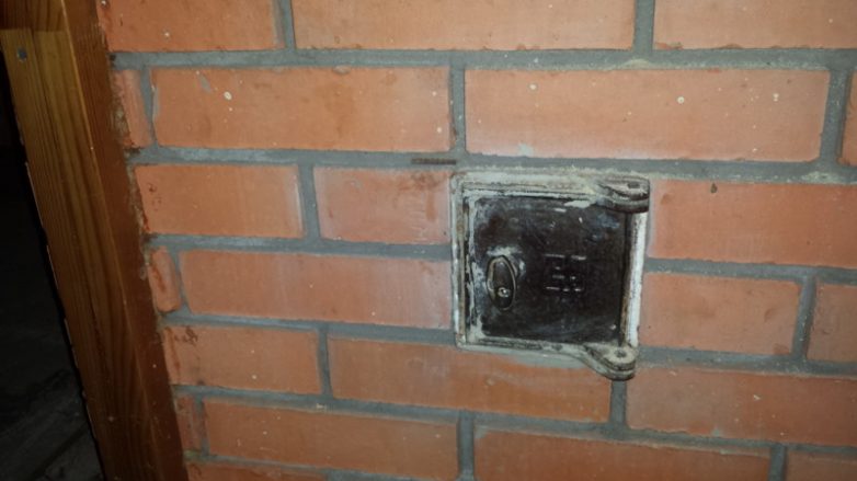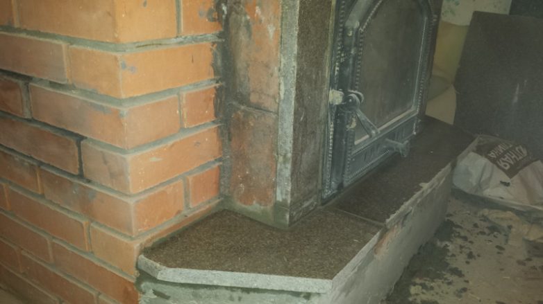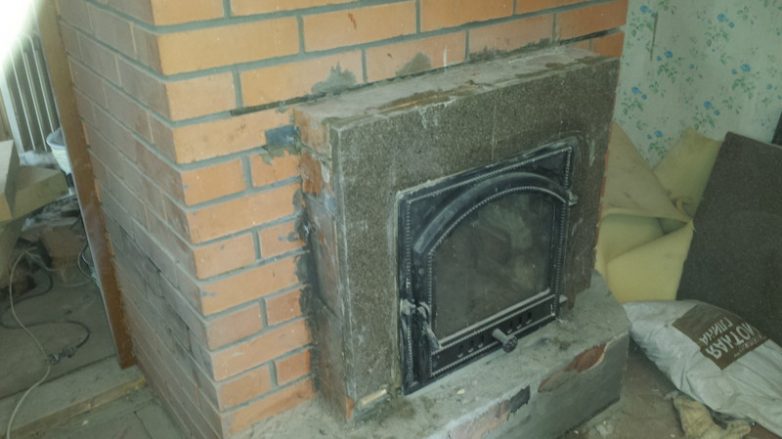 Фанерка прилеплена, чтобы понять, какого размера надо купить каминную дверцу.