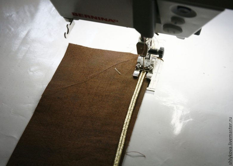Шьем по шву, которым пришили сутаж, как на фото внизу.
