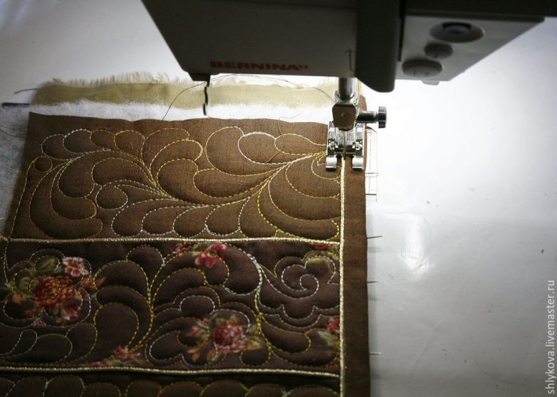 5. Стегаем, поставив штопальную лапку, если стегать не умеем, делаем прямые параллельные линии.