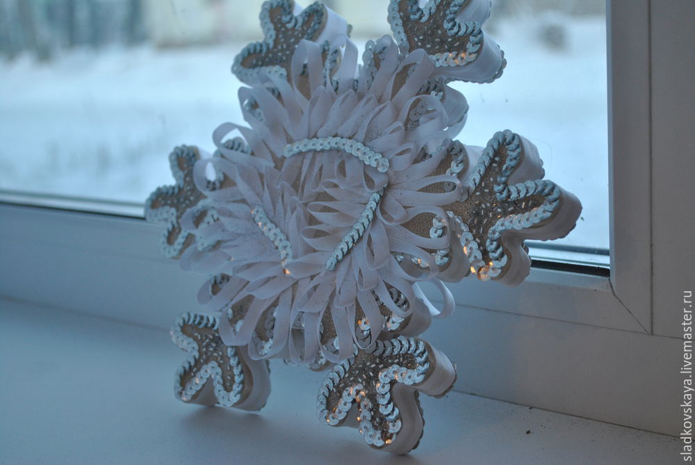 Снежинка готова. Можно сделать веревочку и повестить как декор в квартире.