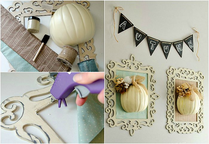 Из декоративной деревянной рамки, высушенной половинки небольшой тыквы и плотной ткани можно смастерить уникальное панно, которое станет изысканным украшением любой стены. Вооружитесь хорошим клеем, красками, сухими ветками, мешковиной и прочими доступными материалами и соберите их в собственную уникальную композицию.