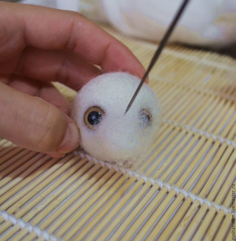 Иглой звездочка 38 свалять маленький овал — это будет хвостик панды.