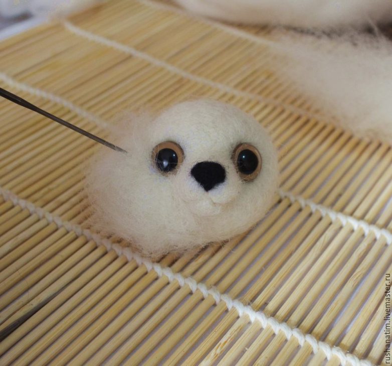 Место соединения мордочки с головой заваливаем облачком шерсти.
