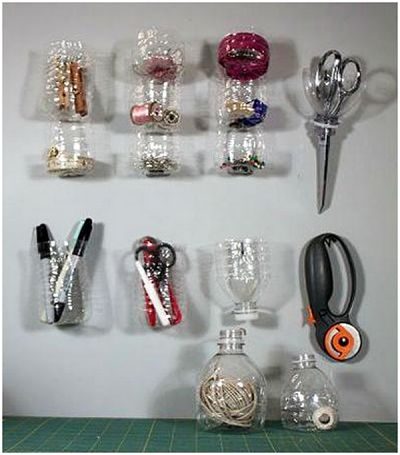 Маленькие, часто используемые вещи оказываются всегда под рукой. Трансформация пустых пластиковых бутылок в контейнеры для хранения является экологическим и удобным способом при мизерных финансовых затратах.