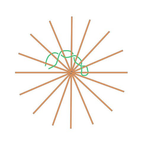 Выберите направление, либо по часовой стрелке или против часовой, оплетайте аккуратно, тщательно соблюдая направление верхней и нижней нити, чтобы ковер получился красивым.