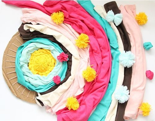 Сделайте несколько помпонов из тонких полосок футболок.