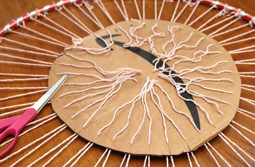 Шаг 3: Из картона или гимнастического обруча нужно сделать ткацкий станок