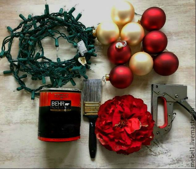 Определите на верхней планке середину и с помощью шуруповёрта закрепите в этом месте гирлянду.