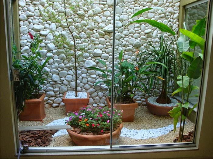 Интересную обстановку возможно создать благодаря потрясающему оформлению мини-сада дома.
