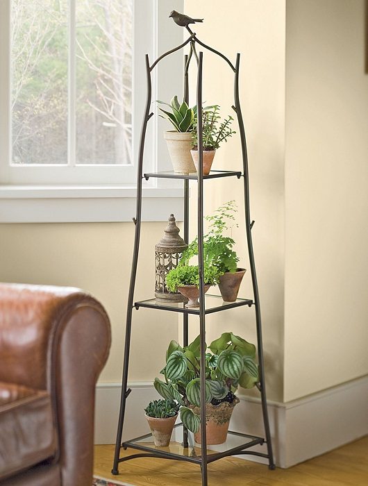 На полочках возможно разместить симпатичный мини-сад, что станет пожалуй самым лучшим решением для украшения любого интерьера.