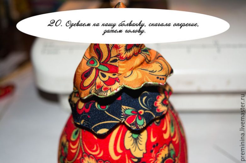 20. Надеваем на нашу болванку, сначала оперение, затем голову.