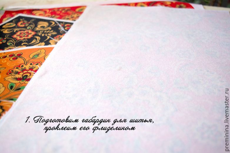 1. Подготовим габардин для шитья, проклеим его флизелином (тогда он не будет осыпаться).