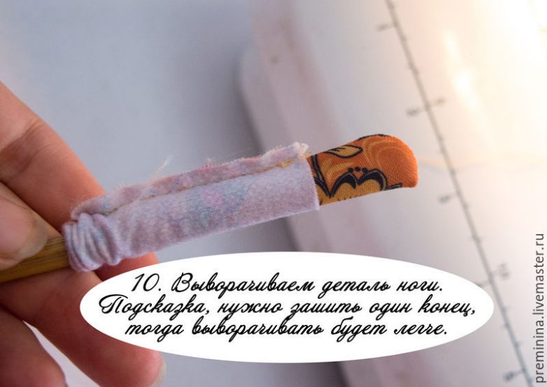 36. Лапки. Прошиваем, надрезаем уголки, выворачиваем. Проглаживаем и набиваем. В отверстия вставляем наши ноги и потайным швом пришиваем.