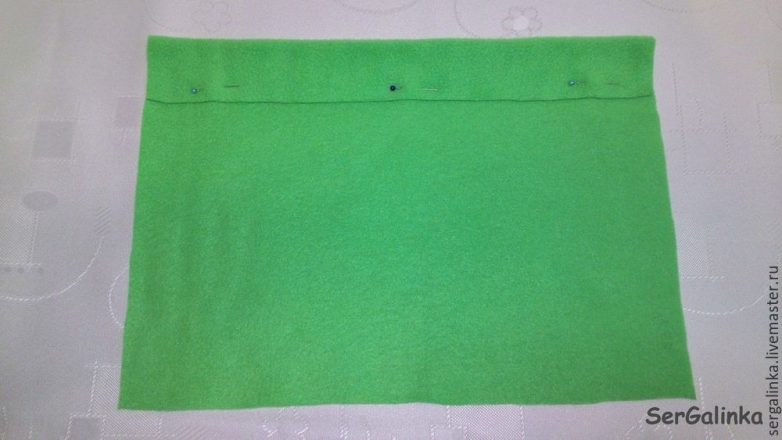 Подгибаем верхнюю часть ширины на 5 см и скалываем портновскими иголками.