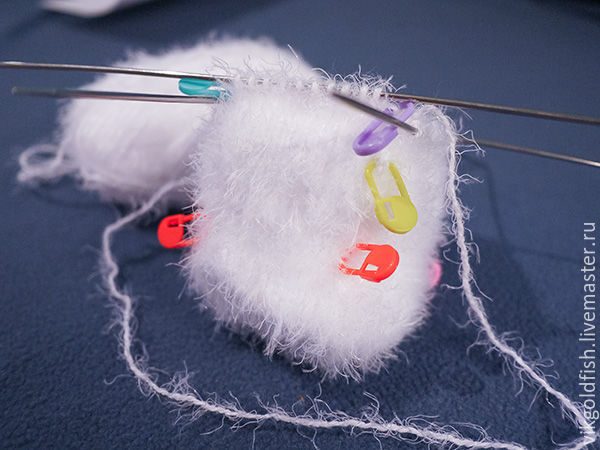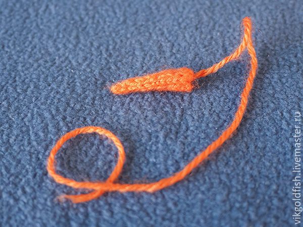 Набрать 9 петель, распределить на 3 спицы. Хвостик нити оставляем подлиннее, чтоб потом этой же нитью пришить носик.