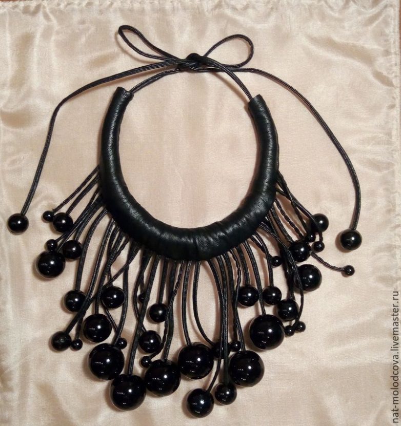 Предлагаем мастер-класс по изготовлению колье из кожаного шнура и бусин.