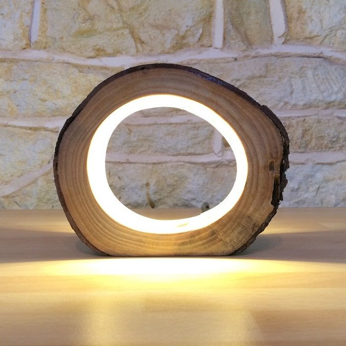 Симпатичная лампа выполнена из дерева, что впечатлит по-максимуму.