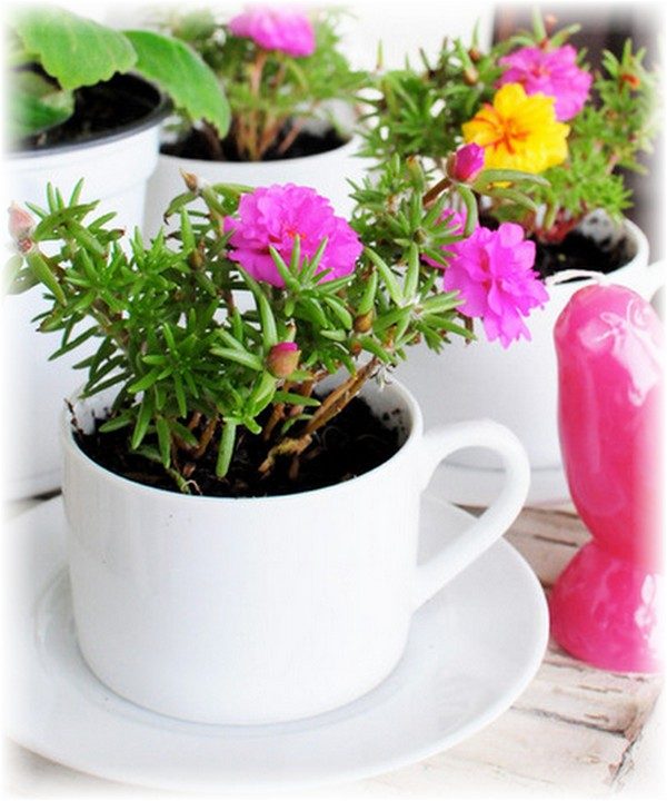Декоративные чашки, наполненные красивыми цветами, травами или суккулентами станут прекрасным аксессуаром интерьера. Создайте свой собственный огород или цветник на столе, полке или окне.