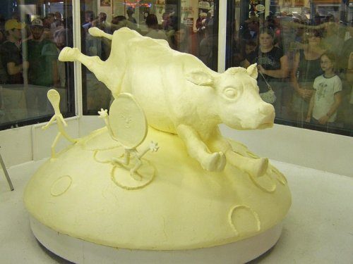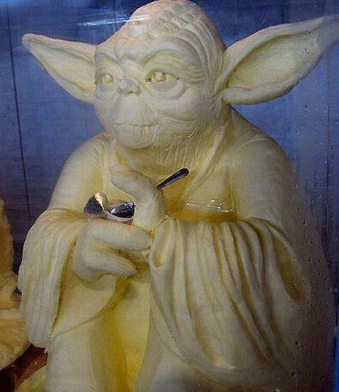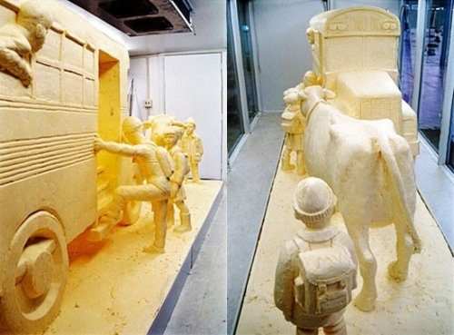 Идея создавать скульптуры из сливочного масла родилась не сегодня. Первыми, кто начал делать масляные скульптуры, были буддийские монахи, использовавшие для этих целей масло яков и создававшие различные украшения, предназначенные для религиозных торжеств, фестивалей и праздников, в том числе для встречи Нового года.