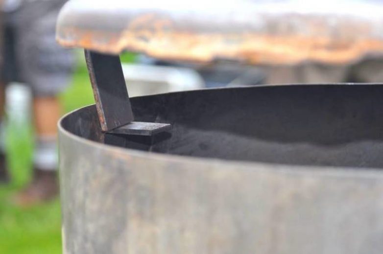 В дне вместительной емкости для воды, которая станет варочной чашей, парень вырезал отверстие, после чего с помощью сварки установил резервуар на верх стальной трубы. Он также добавил рассекатель для выравнивания температуры. Таким образом, готовить можно не только на верхней части емкости, но и непосредственно внутри её, в т.ч. запекать, варить, тушить или жарить любые блюда.