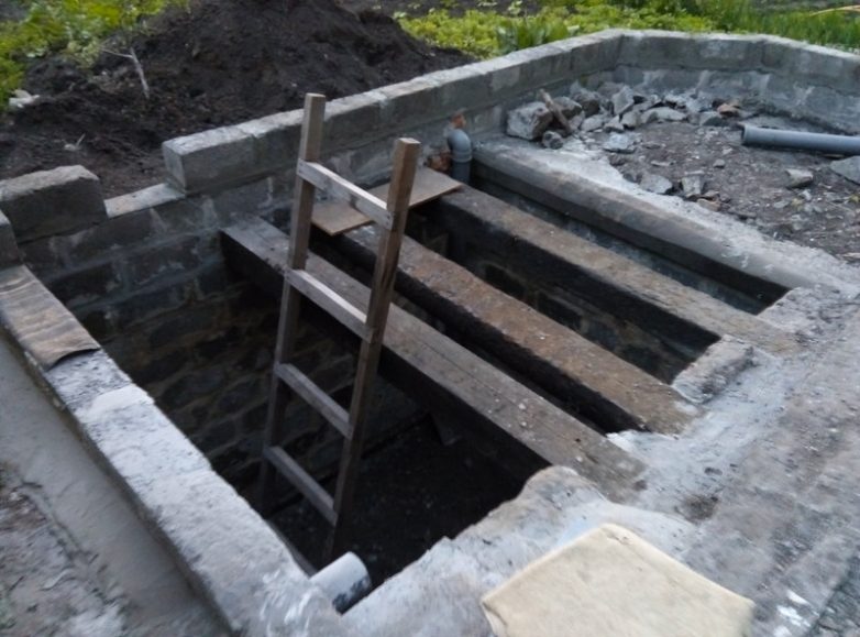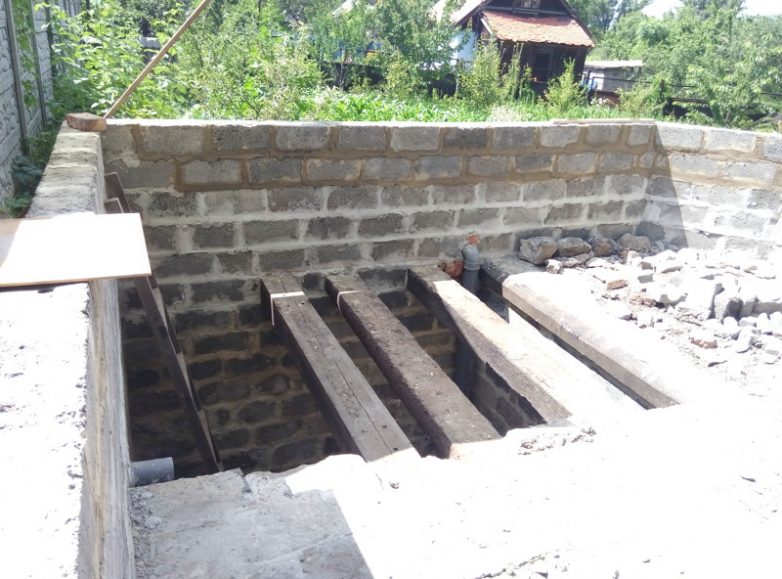 Все сделано хорошо и толково.Но! Перекрывать б/у шпалами погреб и это одновременно будет служить полом-мина замедленного действия! Снизу они буду потеть, сверху потянут влагу, засыпаны мусором и сверху бетонный раствор и одно время могут рухнуть с очень печальными последствиями.Шпалы на путях проветриваются, высыхают, потому и служат более менее, а в этих условиях через пару лет пропадут без сомнений.Прекрасно знаю их свойства и условия для них. Обязательно усильте пол с применением несущей арматуры и бетона, чтобы потом не пожалеть что не сделал этого.