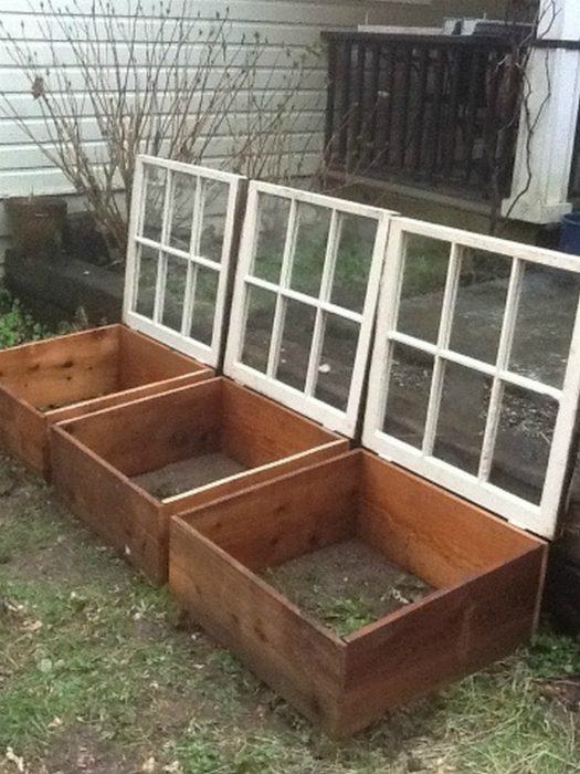 Из четырех досок и оконной рамы можно сделать оригинальную небольшую теплицу для цветов и растений. Сначала крышку из оконной рамы следует держать закрытой, а когда растения подрастут и окрепнут — откинуть.