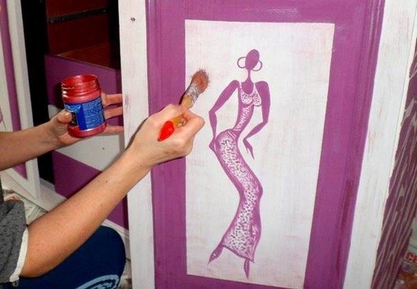 На дверцах задумано прорисовать африканок. Тонкой кистью нанесите рисунки, образцы которых легко найти в интернете.