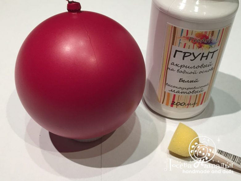 1. Берем шарик, снимаем хвостик-держалку. Обезжириваем водкой. Наносим грунт.