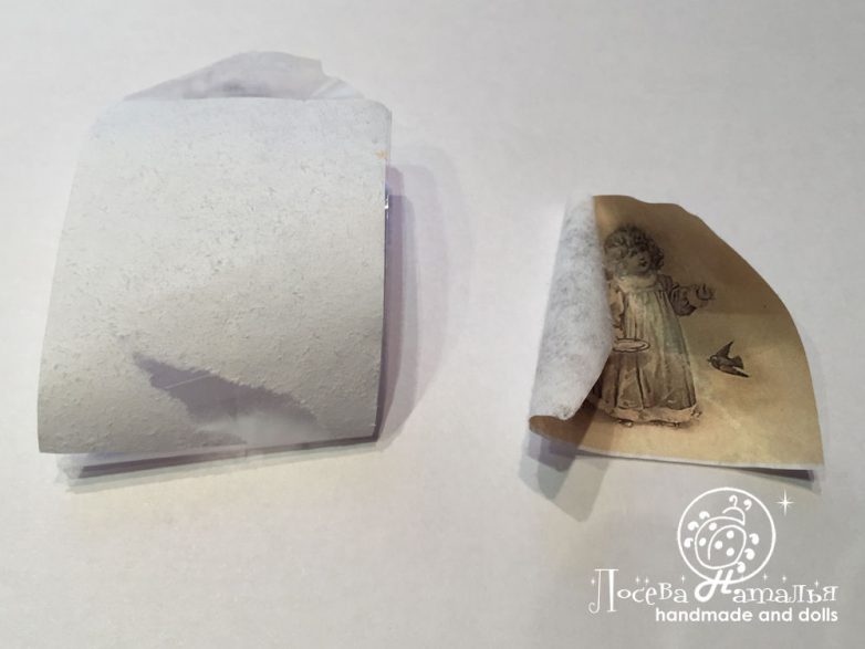 4. Готовим картинки. Истончаем их с помощью скотча. Дальше обрываем края и надрезаем краешки, чтобы картинка лучше легла на шар. Хотя в нашем случае, складки шарику будут «к лицу».