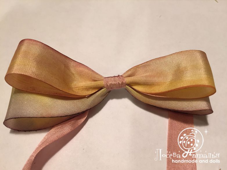 13. С помощью шелковых лент и пуговицы создаем бант и привязываем его к шарику.