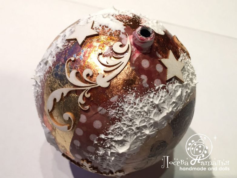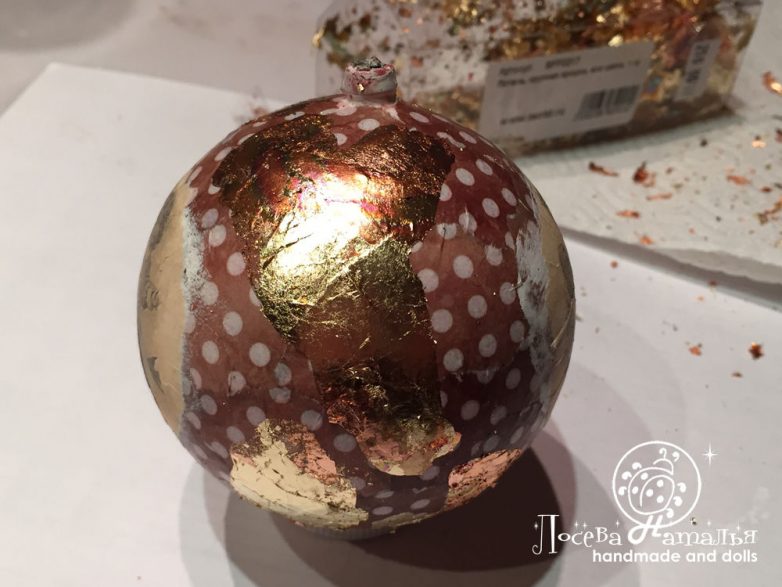 7. После оклеивания поталевой крошкой, весь шар покрываем шеллаком.