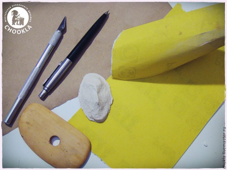 4. Масса папье-маше или любой самозатвердевающий пластик для кукол (я использую папье-маше в порошке фирмы DAS, требующий разведения водой).