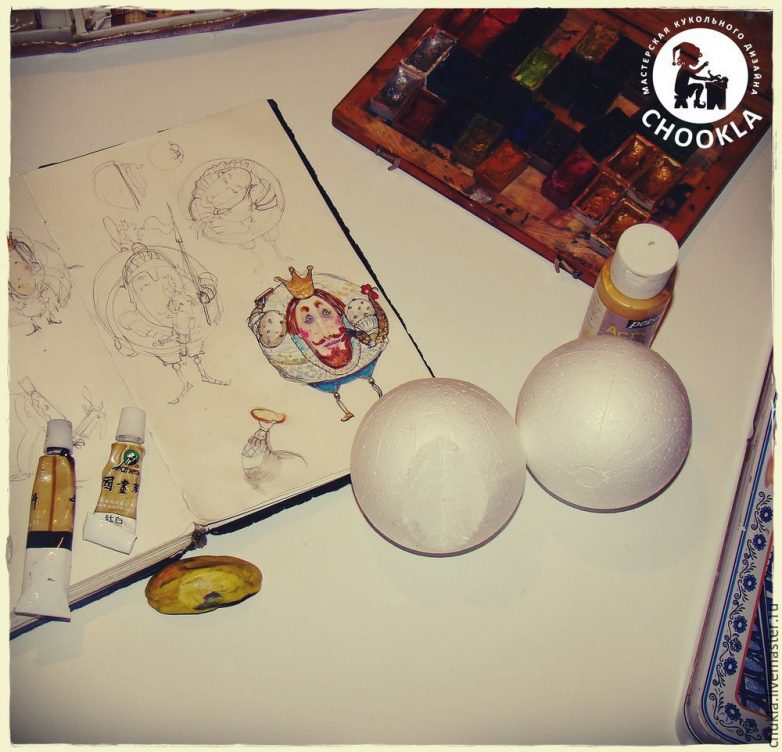 На пенопластовом шаре, с помощью фломастера, я обозначила место для головы.