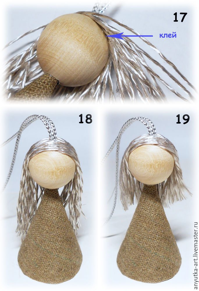 Что делать, если деревянных бусин у вас нет, а ангела смастерить ну очень хочется? Есть очень простой выход: сделать голову ангела из ткани.