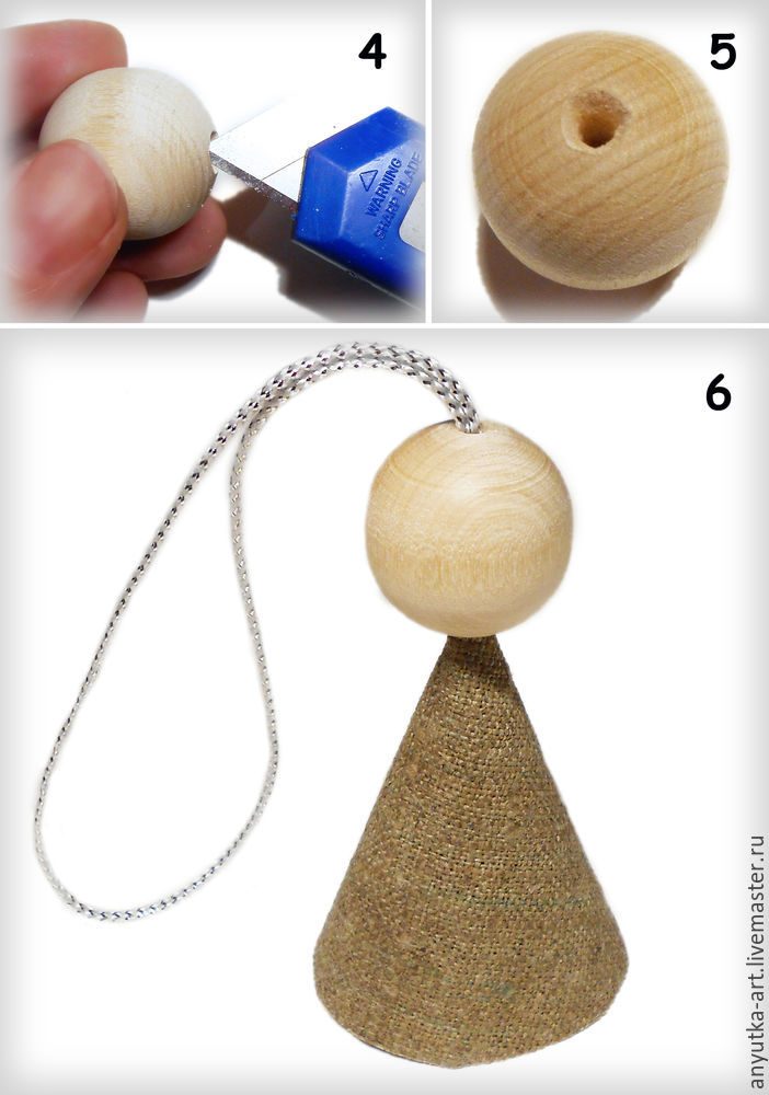 Для ангела, помимо ткани, понадобится крупная деревянная бусина.